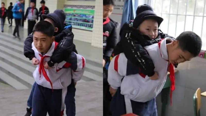 Xu Bingyang tiene apenas 12 años, pero su corazón parece mucho más grande que su edad. Durante seis años, ha cargado a su mejor amigo Zhang Ze en la espalda para llevarlo a clases todos los días. Zhang sufre una rara afección muscular que le impide caminar con normalidad, pero jamás ha faltado a la escuela gracias al compromiso inquebrantable de su compañero.