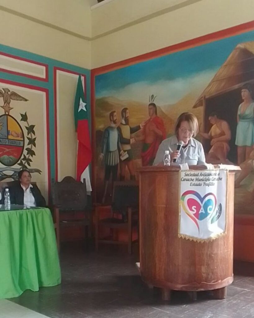 La oradora de orden fue la Licenciada Ana Briceño de Sáez, actual presidenta de la Sociedad Anticancerosa en Carache, quien ofreció una emotiva intervención en la que relató los inicios de la organización desde sus modestos esfuerzos comunitarios, destacando el apoyo de patrocinadores locales, voluntarios y médicos especialistas que han sostenido sus operaciones durante más de dos décadas. Subrayó además los servicios que ofrecen, desde consultas médicas preventivas, campañas de concientización, hasta tratamientos oncológicos, todo con un enfoque humano y solidario.