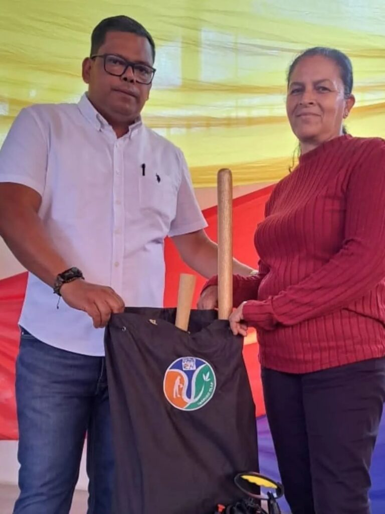 La jornada, coordinada por la Dirección de Agricultura de la Alcaldía, distribuyó los kits que incluyen herramientas e insumos esenciales para las labores del campo. Entre los artículos entregados se encuentran chicoras, escardillas, machetes, mangueras, guantes y una asperjadora de 8 litros, junto con otros implementos de jardinería.
